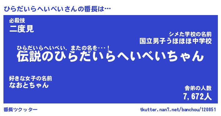 | 男性向けラノベタイトル風あだ名 | 『ひらだいらへいべいの憂鬱』 |