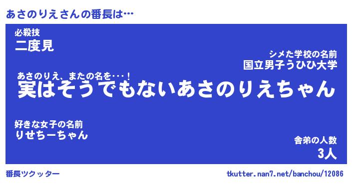 | ポケモン風あだ名 | 『アサチュウ』『アサノダネ』 |