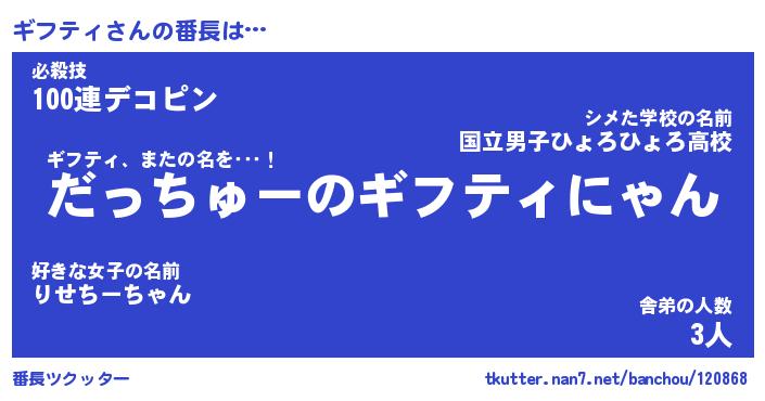 | 意味不明あだ名 | 『ペロリンギフティ』『永久保存ギフティ』 |
