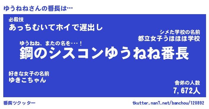 | 意味不明あだ名 | 『ペロリンゆうねね』『永久保存ゆうねね』 |