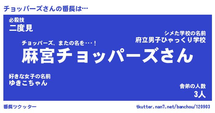 | ヒーロー風カッコイイあだ名 | 『スーパーチョッパーズ』『天弓騎士チョ』 |