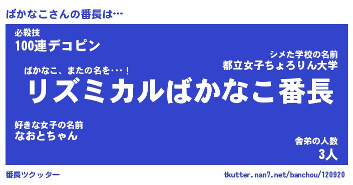 | ヒーロー風カッコイイあだ名 | 『スーパーバカナコ』『黄金騎士バカ』 |