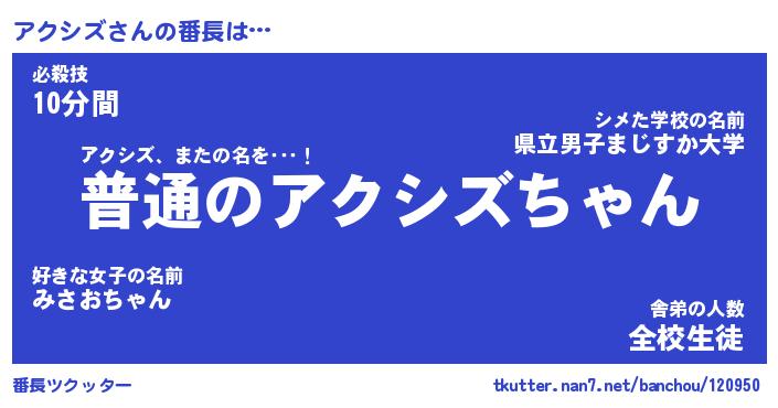 | 意味不明あだ名 | 『ペロリンアクシズ』『永久保存アクシズ』 |
