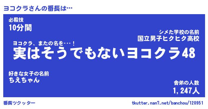 | 意味不明あだ名 | 『ペロリンヨコクラ』『永久保存ヨコクラ』 |