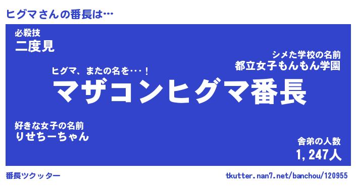 | ポケモン風あだ名 | 『ヒグチュウ』『ヒグマダネ』 |