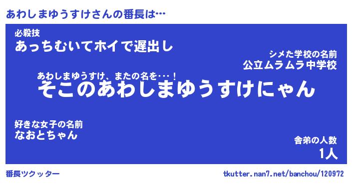 | 男性向けラノベタイトル風あだ名 | 『あわしまゆうすけの憂鬱』 |