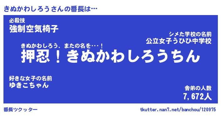 | ヒーロー風カッコイイあだ名 | 『スーパーキヌカワシロウ』 |