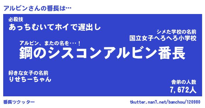 | 伝説のあだ名 | 『封印されしスナイパーアルビン』 |