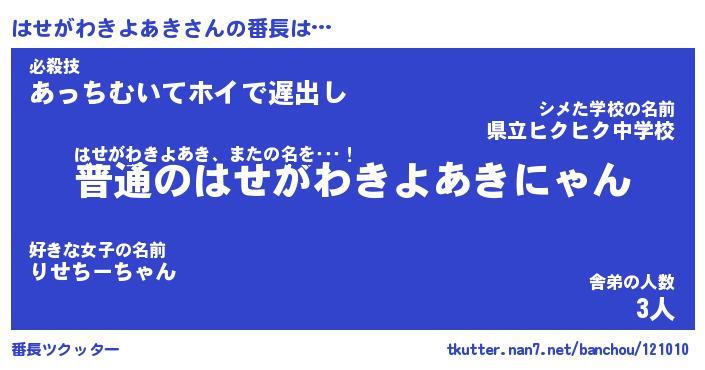 | 2回繰り返すあだ名 | 『はせはせ』『ははせせ』『おたおた』 |