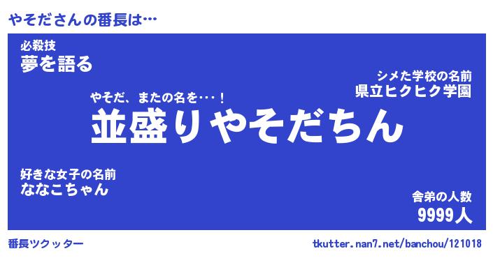 | 肩書あだ名 | 『やそだ店長』『やそだ国家主席』 |