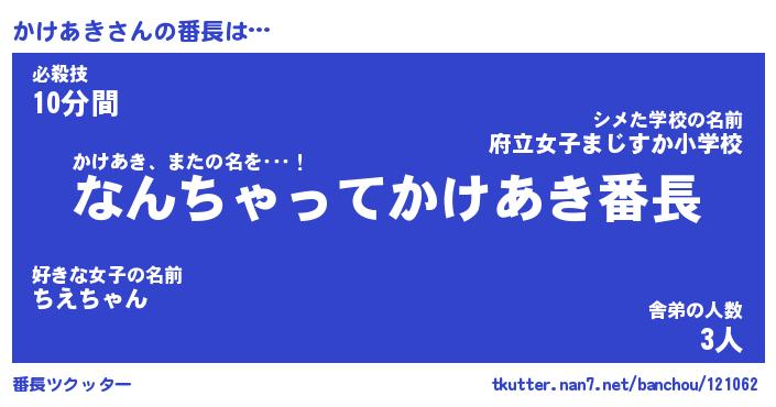 | ヒーロー風カッコイイあだ名 | 『スーパーカケアキ』『幻影騎士カケ』 |