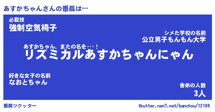 | ヘコむあだ名 | 『あすにー』『牛乳』『あすを』 |