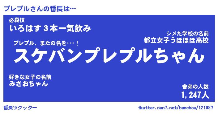 | 意味不明あだ名 | 『ペロリンプレプル』『永久保存プレプル』 |