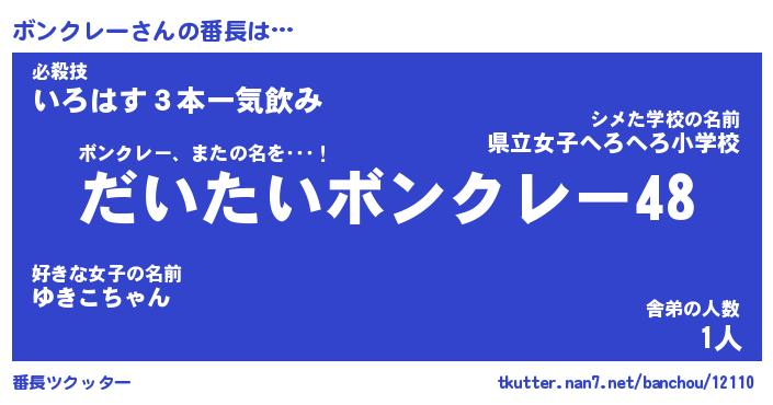 | ヒーロー風カッコイイあだ名 | 『スーパーボンクレー』『銀牙騎士ボン』 |