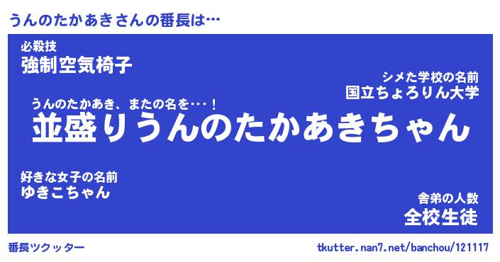 | 肩書あだ名 | 『うんのたかあき店長』 |