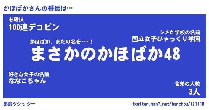 | ヘコむあだ名 | 『かほっふぃ~』『牛乳』『かほっ子』 |