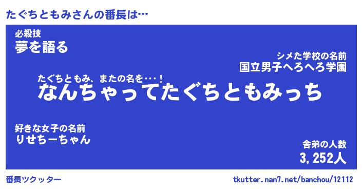 | ヒーロー風カッコイイあだ名 | 『スーパータグチトモミ』『幻影騎士タグ』 |