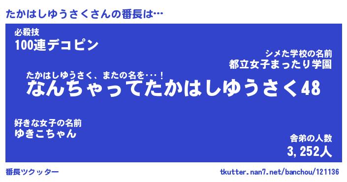 | 肩書あだ名 | 『たかはしゆうさく御曹司』 |