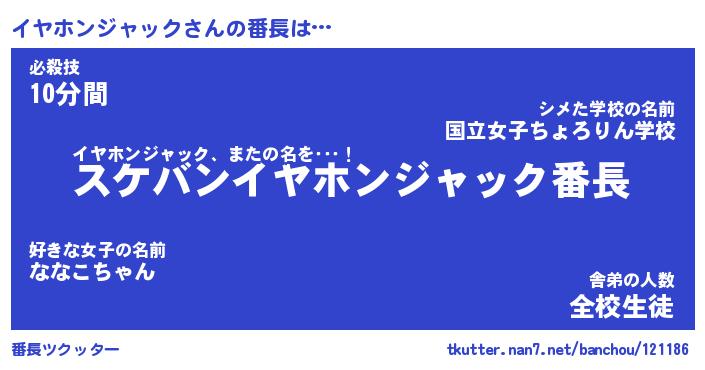 | 伝説のあだ名 | 『不死鳥のスナイパーイヤホンジャック』 |