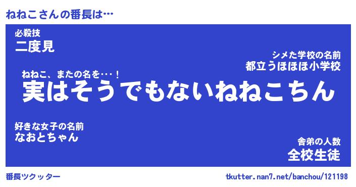 | 肩書あだ名 | 『ねねこ店長』『ねねこ総理大臣』 |