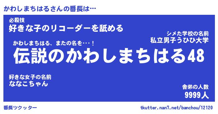 | 伝説のあだ名 | 『伝説のスナイパーかわしまちはる』 |