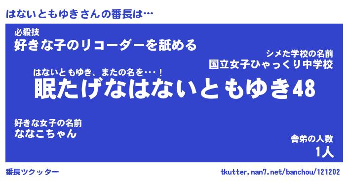 | ヘコむあだ名 | 『はなにー』『牛乳』『はなっぺ』 |