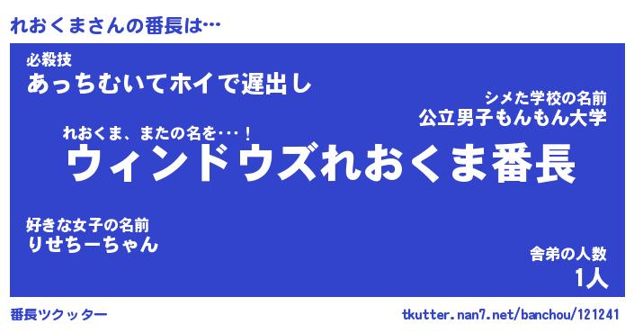 | 伝説のあだ名 | 『伝説のスナイパーれおくま』 |