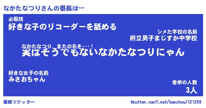 | ヒーロー風カッコイイあだ名 | 『スーパーナカタナツリ』『天弓騎士ナカ』 |