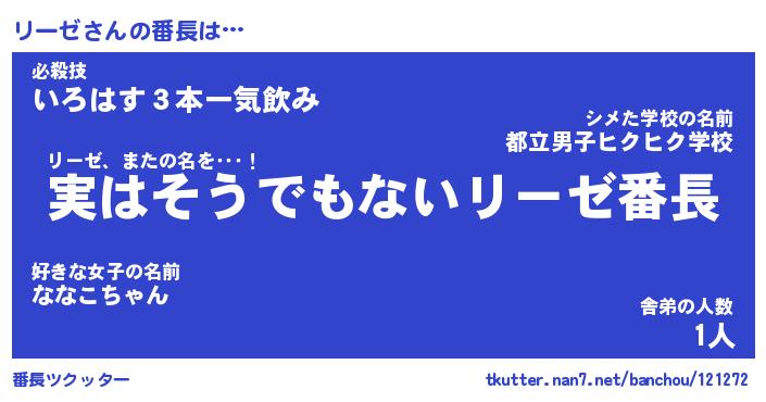 | 意味不明あだ名 | 『ペロリンリーゼ』『リーゼフォーエバー』 |