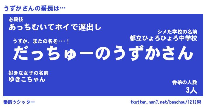 | ピコ太郎風あだ名 | 『ウコ次郎』『ピウ史郎』『ウズ二郎』 |