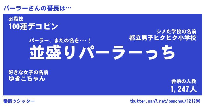| 意味不明あだ名 | 『ペロリンパーラー』『永久保存パーラー』 |