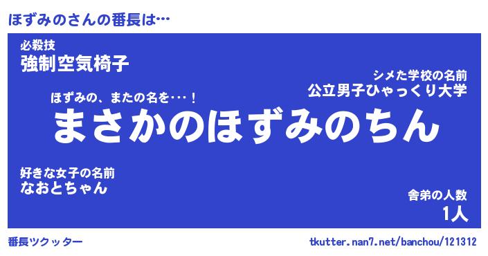 | 意味不明あだ名 | 『ペロリンほずみの』『永久保存ほずみの』 |