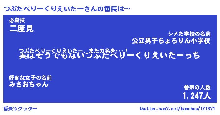 | 欧米人風あだ名 | 『マイケルつぶたべりーくりえいたー』 |