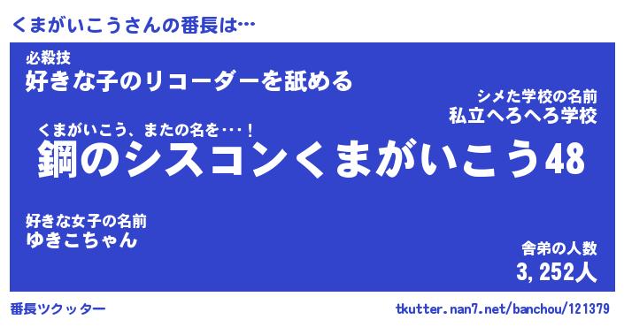 | ピコ太郎風あだ名 | 『クコ三郎』『ピク史郎』『クマ次郎』 |
