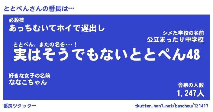 | 意味不明あだ名 | 『ペロリンととぺん』『永久保存ととぺん』 |