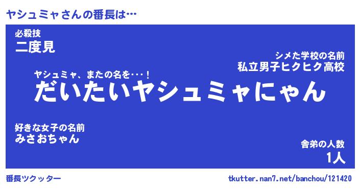 | ポケモン風あだ名 | 『ヤシチュウ』『ヤシュダネ』 |