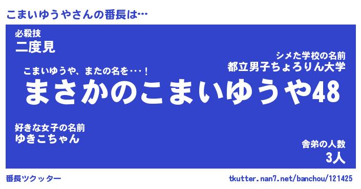 | ヒーロー風カッコイイあだ名 | 『スーパーコマイユウヤ』『幻影騎士コマ』 |