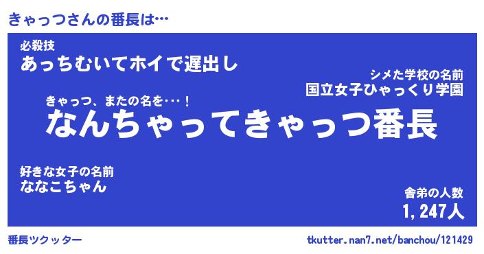 | 意味不明あだ名 | 『ペロリンきゃっつ』『永久保存きゃっつ』 |