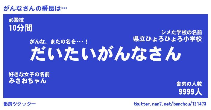 | ポケモン風あだ名 | 『ガンチュウ』『ガンナダネ』 |