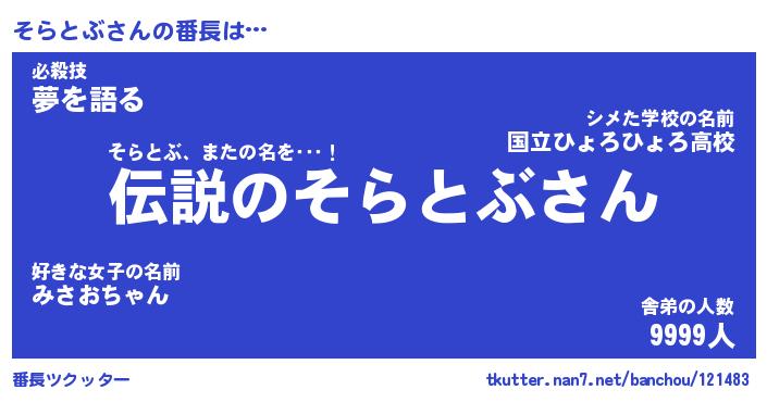 | 意味不明あだ名 | 『ペロリンそらとぶ』『永久保存そらとぶ』 |