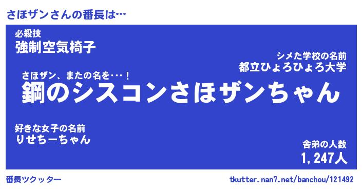 | ポケモン風あだ名 | 『サホチュウ』『サホザダネ』 |