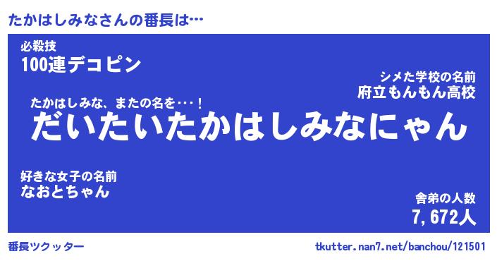 | 肩書あだ名 | 『たかはしみな店長』『たかはしみな団長』 |
