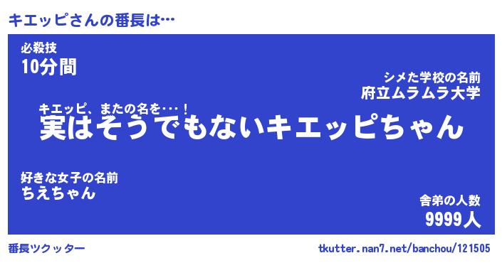| 意味不明あだ名 | 『ペロリンキエッピ』『永久保存キエッピ』 |