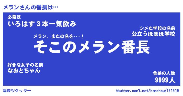 | ヒーロー風カッコイイあだ名 | 『スーパーメラン』『ウルトラメランマン』 |