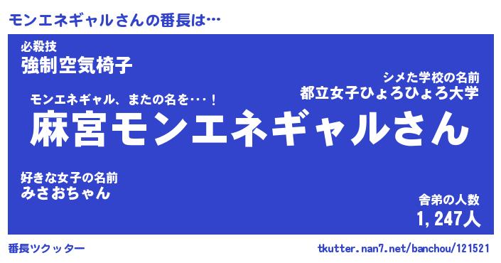| ヒーロー風カッコイイあだ名 | 『スーパーモンエネギャル』 |