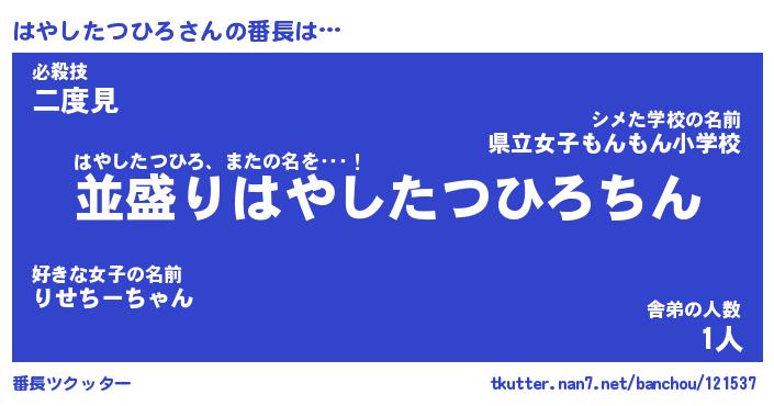 | 男性向けラノベタイトル風あだ名 | 『はやしたつひろの憂鬱』 |