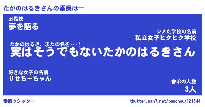 | 伝説のあだ名 | 『封印されしスナイパーたかのはるき』 |