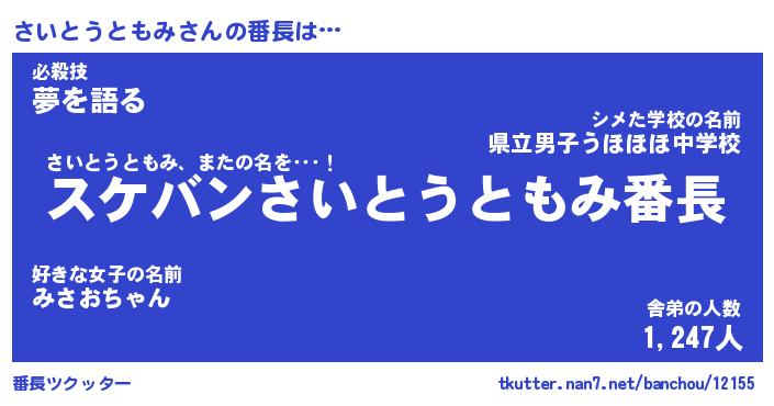 | 肩書あだ名 | 『さいとうともみ御曹司』 |
