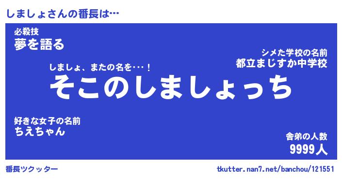 | ヒーロー風カッコイイあだ名 | 『スーパーシマショ』『魔戒騎士シマ』 |