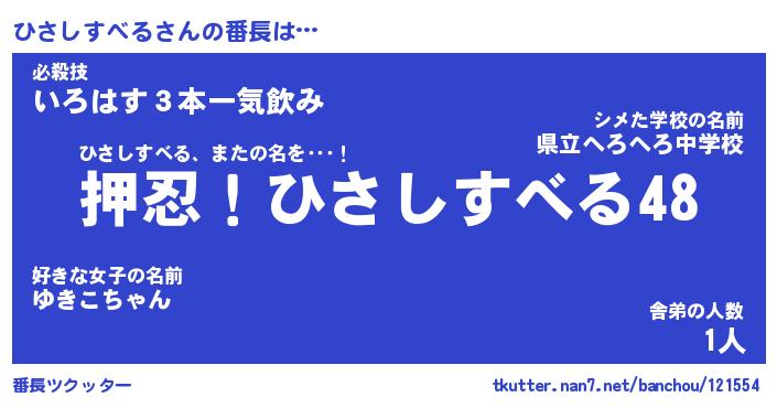 | ヒーロー風カッコイイあだ名 | 『スーパーヒサシスベル』『銀牙騎士ヒサ』 |